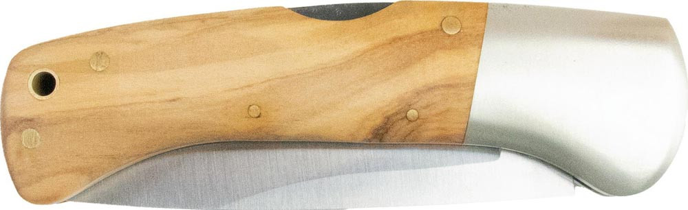 hochwertiges Taschenmesser · Beschalung Olivenholz · Klinge rostfrei · satinierte Backe