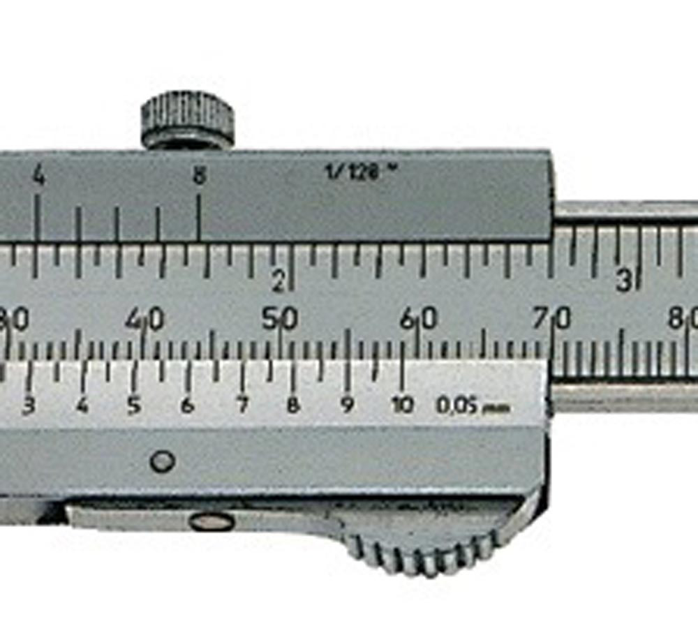 mit Feststellschraube und Momentfeststellung · Hauptteilung tiefergelegt · Skala und Nonius mattverchromt · für Innen-, Außen-,Tiefen- und Stufenmessung