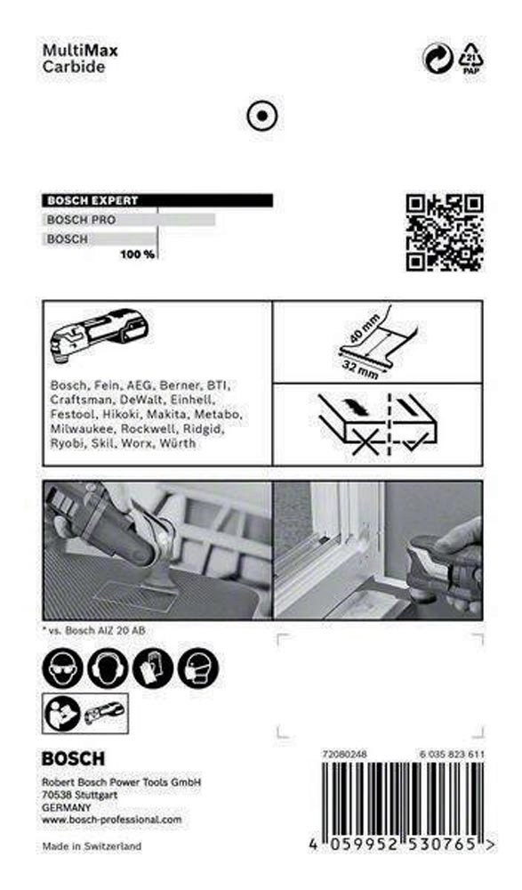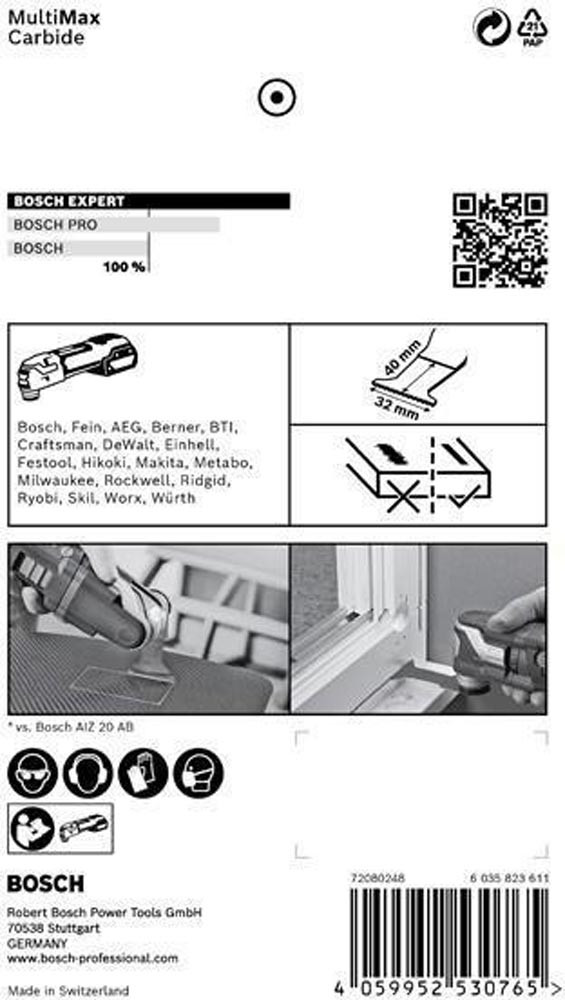Herausragende Lebensdauer in Blech und abrasiven Materialien! Zusätzliche Beschichtung macht Carbide härter Unabhängig davon · ob du an Gebäuden oder Fahrzeugen arbeitest: Ein Blatt für Multifunktionswerkzeuge · das hervorragende Schnitte in jedes Material ermöglicht · erleichtert das Arbeitsleben erheblich. Der EXPERT MultiMax integriert alle fortschrittlichsten Fertigungstechniken von Bosch und macht dein Multifunktionswerkzeug extrem vielseitig. Die Curved-Tec-Blätter von Bosch überzeugen dank ihrer Fähigkeit · saubere Tauchschnitte und schwierige Schnitte auf hohem Niveau zu ermöglichen. Mit dem Bosch EXPERT MultiMax Blatt für Multifunktionswerkzeuge kannst du diese Fähigkeit für Tauchschnitte auf die härtesten Materialien wie Blech · Kohlefaser und roten Backstein übertragen. Überragende Lebensdauer dank Bosch Carbide Technology