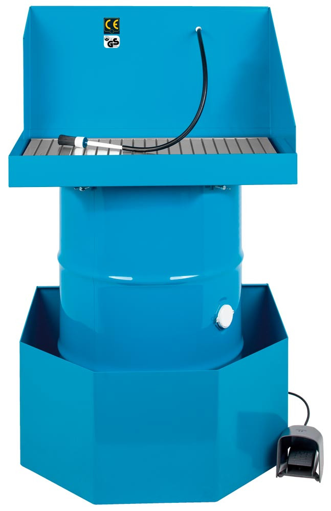 Set bestehend aus: ∙ Teilereinigungsgerät, komplett ∙ Auffangwanne ∙ Spezialreiniger 200 Liter Fass Purgasol ∙ Arbeitshöhe 922 mm