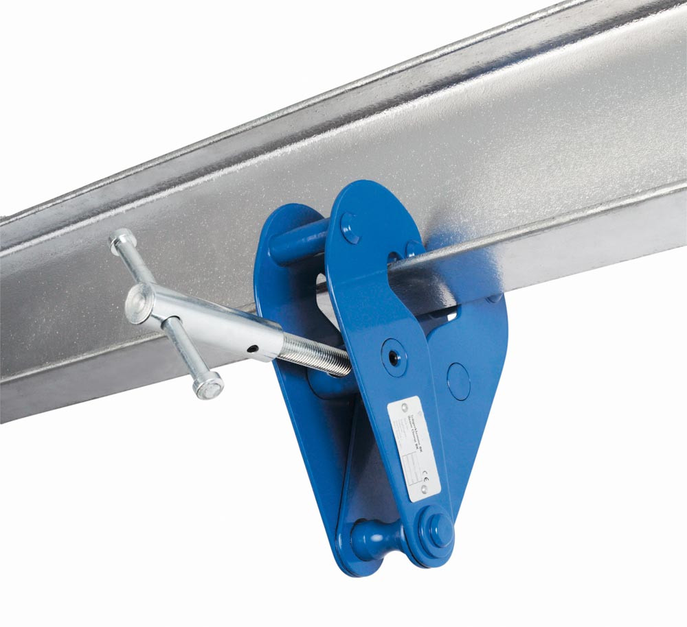 ∙ Solide Stahlkonstruktion ∙ Verzinkte Spindel ∙ Anschlagpunkte zur Aufnahme von Hebezeugen und unterschiedlichsten Trägern durch flexible Klemmbereiche
