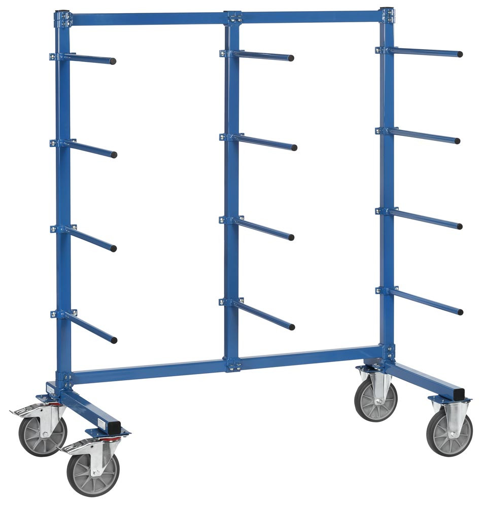 · Variables System für Langguttransporte und -lagerung · Tragarme stufenlos verstellbar · Wagen komplett verschraubt