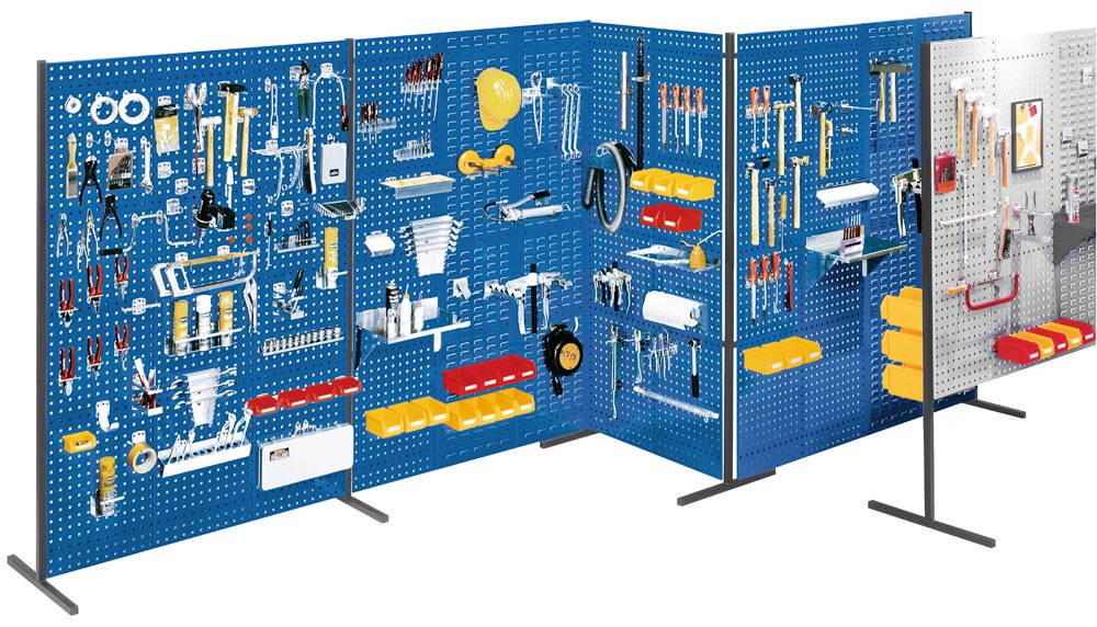 Trennwand bestehend aus 2 Lochplatten, Einzelfeld BxH 1000x1500 mm, lichtgrau E847680