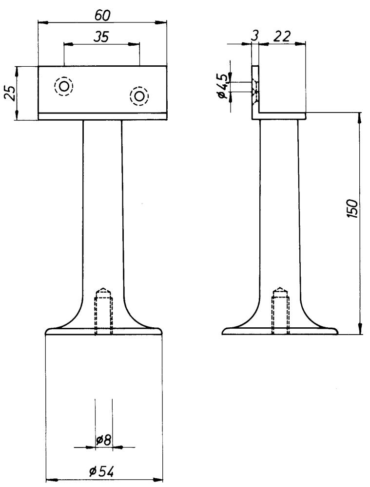 Aluminium · mit Innengewinde M8 und Stockschraube 8 x 60 mm · Höhe: 150 mm