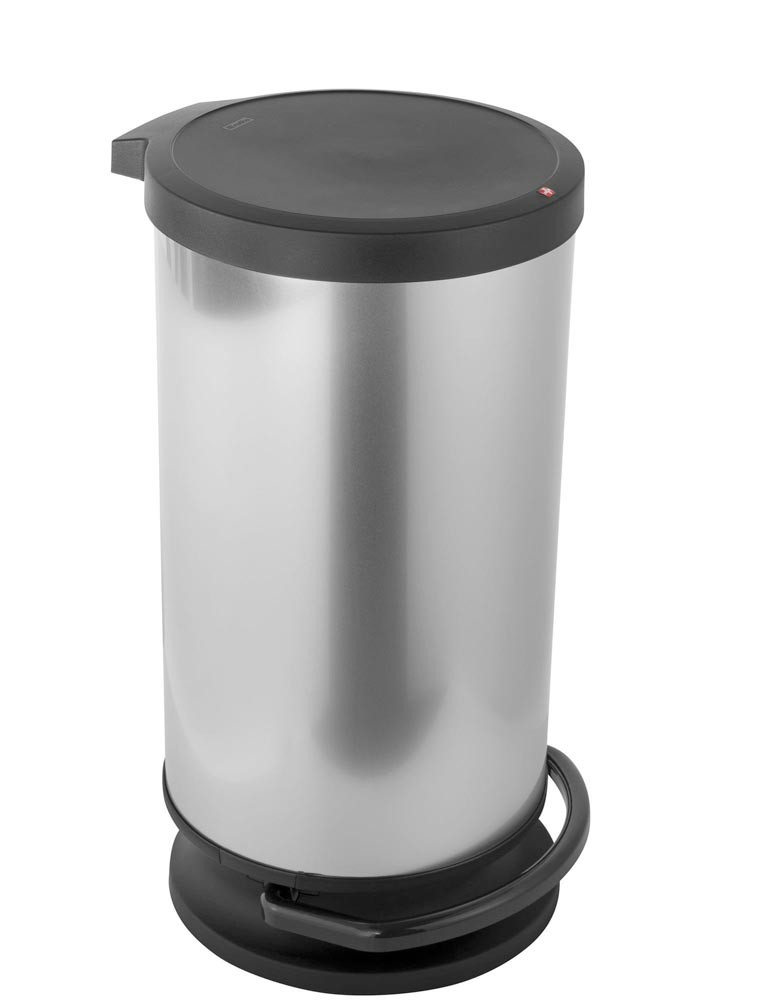 robusten Konstruktion aus flexiblen Kunststoffen · edler Metallic-Look · Dämpfer für sanftes und geräuschloses Schließen · Pedal für einfaches Öffnen · mit Gummifüße für ein festen Stand