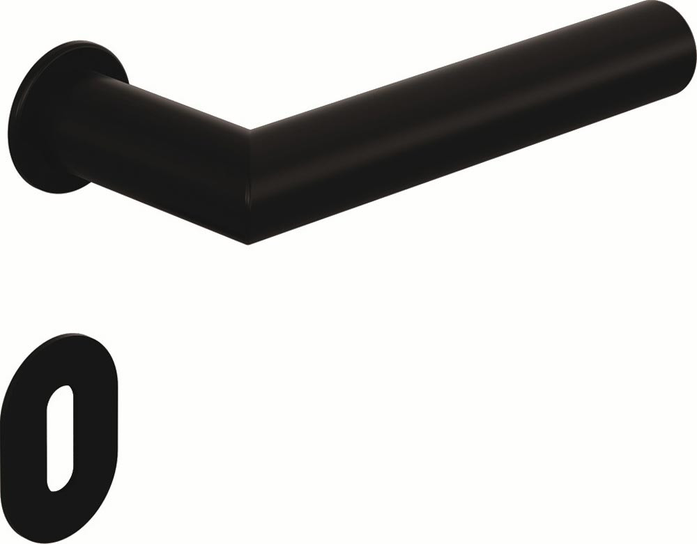 Türdrücker in Gehrungsform aus Polyamid mit durchgehendem Stahlkern bis in das Drückerende, durchgängig eingefärbt Oberfläche matt