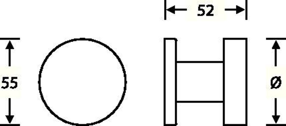 Befestigung einseitig · Knöpfe Massiv · Knöpfe (Ø 50 mm Aluminium, Ø 55 mm Edelstahl) auf Rosette (Ø 55 mm) · Befestigung 05 (Verschraubung einseitig) mit Stahl-Unterplatte zum Aufschrauben · ohne Vierkant · die Verbindung wird über eine Madenschraube sichergestellt · Knopfhöhe 52 mm · fest