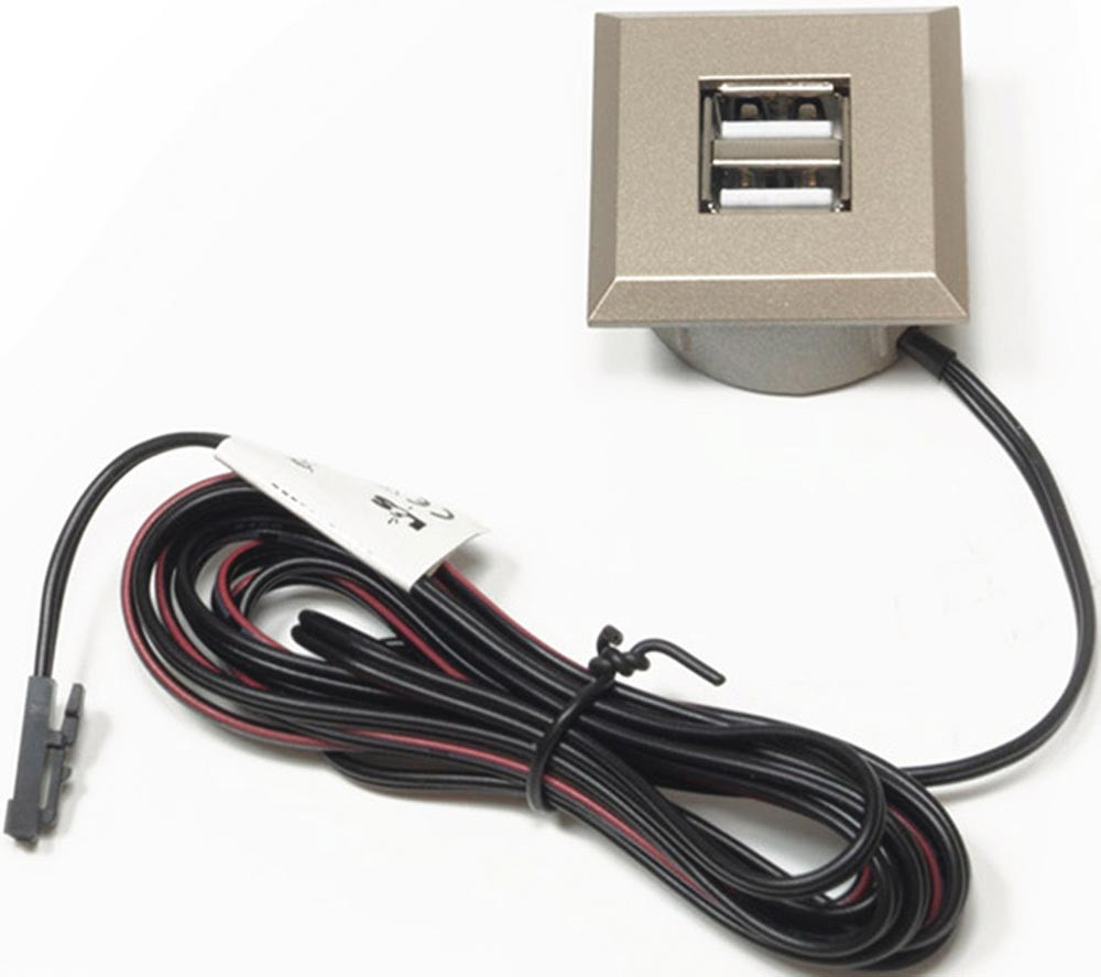 zum Laden von z. B. Smartphone oder Tablet · für Nischenrückwände, Schreibtische oder Nachttische · 16 mm Einbautiefe · Zuleitung 1800 mm · Länge 37 mm · Breite 37 mm