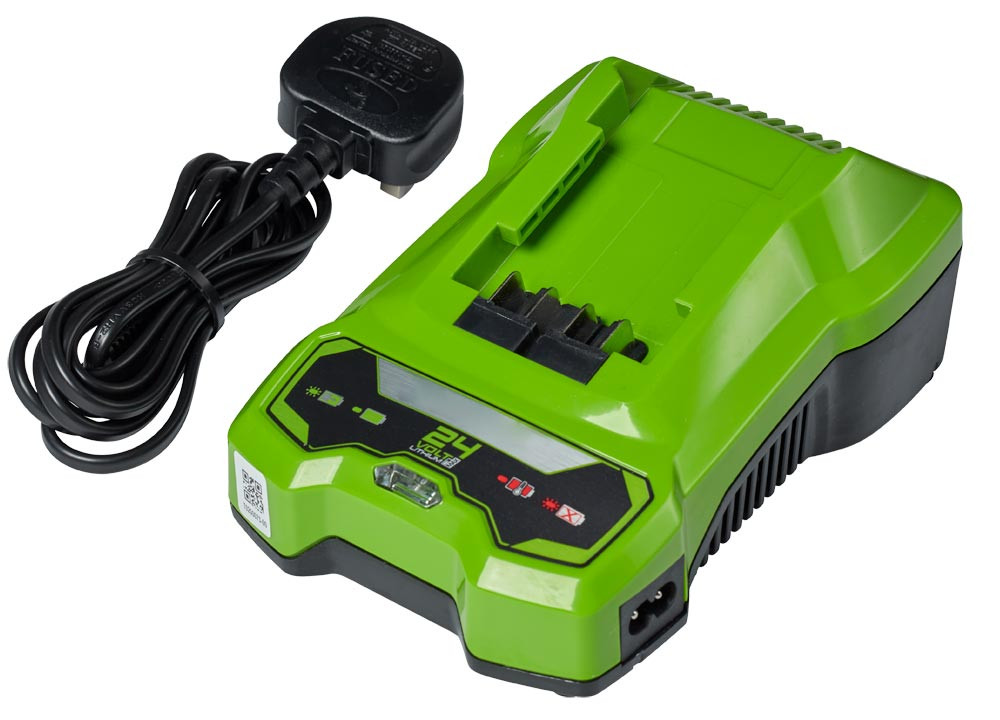 · Mit integrierter LED-Anzeige· Schnelle Ladezeit für 4 Ah max. 2 h · Lange Lebensdauer · Hohe Zyklenfestigkeit · Für 24 Volt Li-Ionen-Akkus · Wandmontage möglich