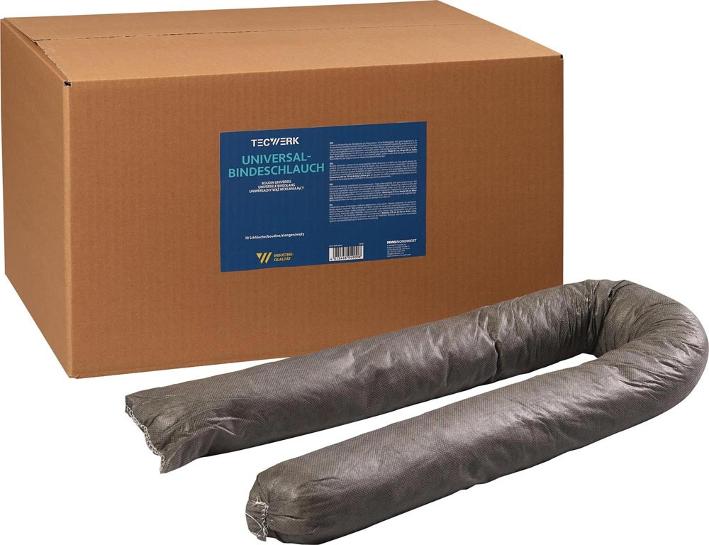 Anwendung: ausgelaufene, nicht aggressiven Flüssigkeiten wie Öle, Kühl- und Lösungsmittel,Wasser, Säuren und Laugen können einfach und schnell zurückgehalten und ein Ausbreiten verhindert werden · gleichzeitig wird die Flüssigkeit durch den Bindeschlauch aufgenommen · bei größeren Mengen kann zusätzlich mit dem Universal-Bindemittel (Granulat) Art-Nr. 6492638 die Verschmutzung abgestreut und aufgenommen werden · einsetzbar in fast allen Arbeitsbereichen wo Flüssigkeiten verarbeitet, gelagert oder transportiert werden · für den Innen- und Außenbereich geeignet