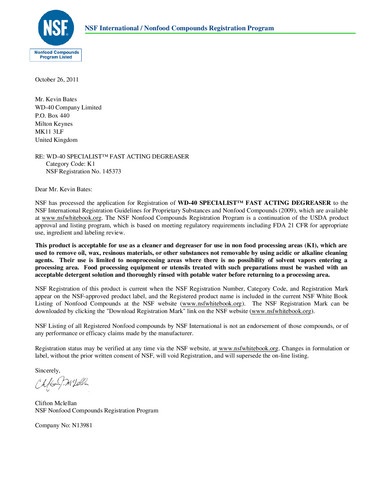 schnell wirkender Lösungsmittelreiniger · entfernt Fett, Öl, Schmutz und Dreck ohne Rückstande zu hinterlassen · gut geeignet für Metalle, Abzugshauben und Bodenbeläge (Materialverträglichkeit vorab prüfen) · wirkt sofort bei Kontakt · leicht abwaschbar · rückstandsfrei · NSF K1 registriert (Reg.-Nr. 145373)
