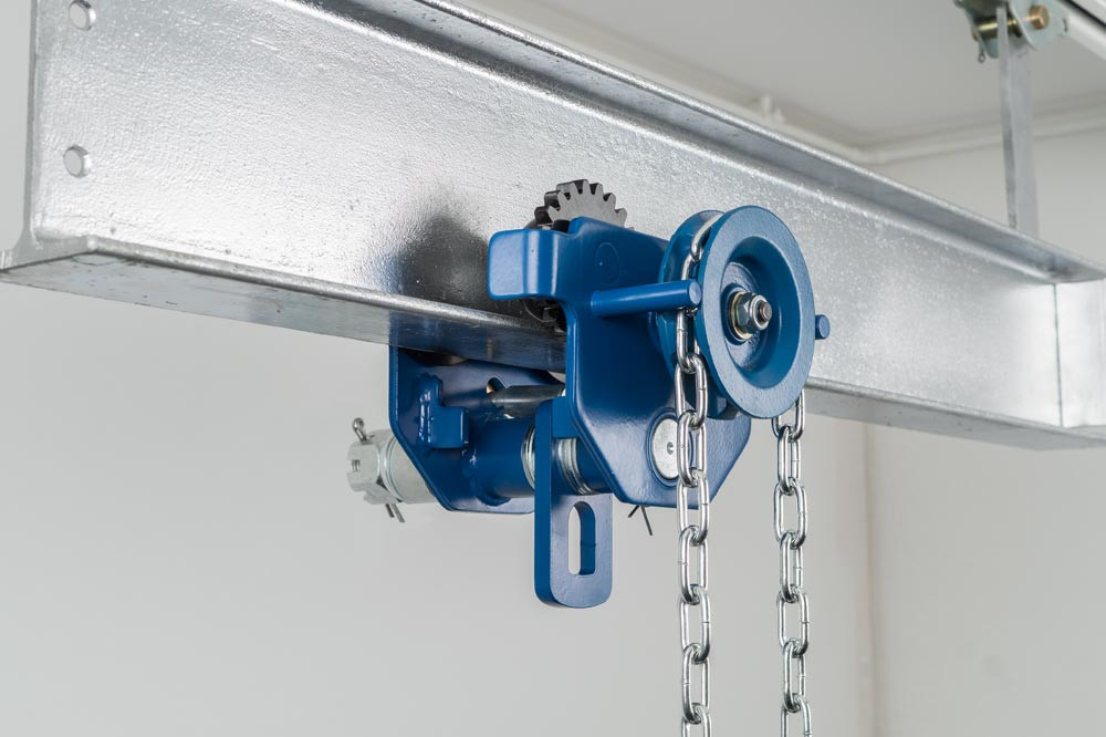 ∙ Haspelfahrwerk mit Endloskette ∙ Verstellbare Bolzen und Aufhängeöse ∙ Verzinkte Handkette für Sicherheit und Dauerhaftigkeit ∙ Stabile, pulverbeschichtete Seitenbleche ∙ Ausgewogene Lastverteilung ∙ Dauergeschmierte Qualitätskugellager mit Dichtungen ∙ Großer, flexibler Einstellbereich ∙ Standardnutzlänge 2,5 m ∙ Auf Anfrage auch als Sonderanfertigung und Kombination aus Hebezug und Katze mit geringer Bauhöhe möglich