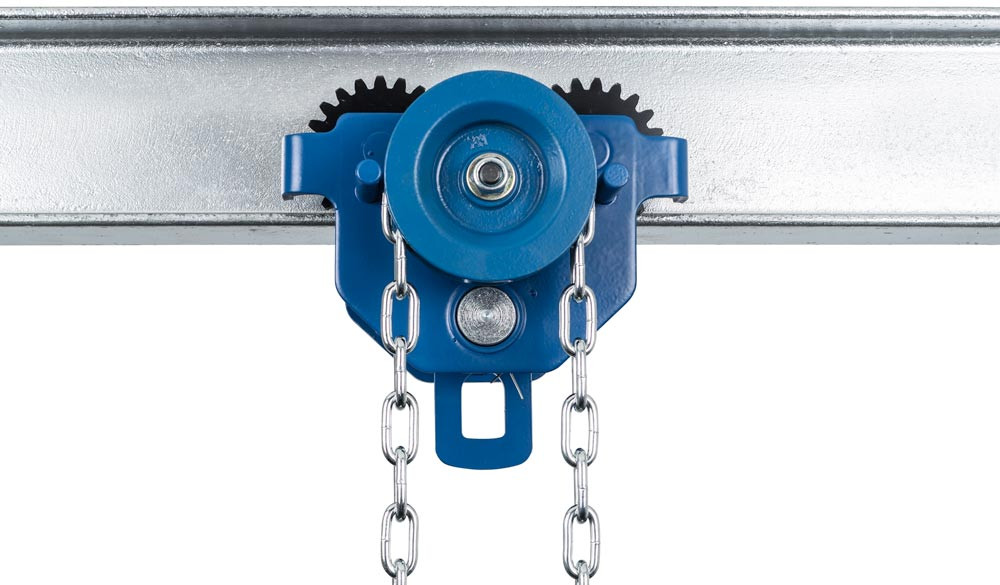 Unterflanschlaufkatze mit Getriebe, Haspelfahrwerk mit verzinkter Endloskette, Traglast 2000 kg, für Flanschbreite 88-203 mm E837182