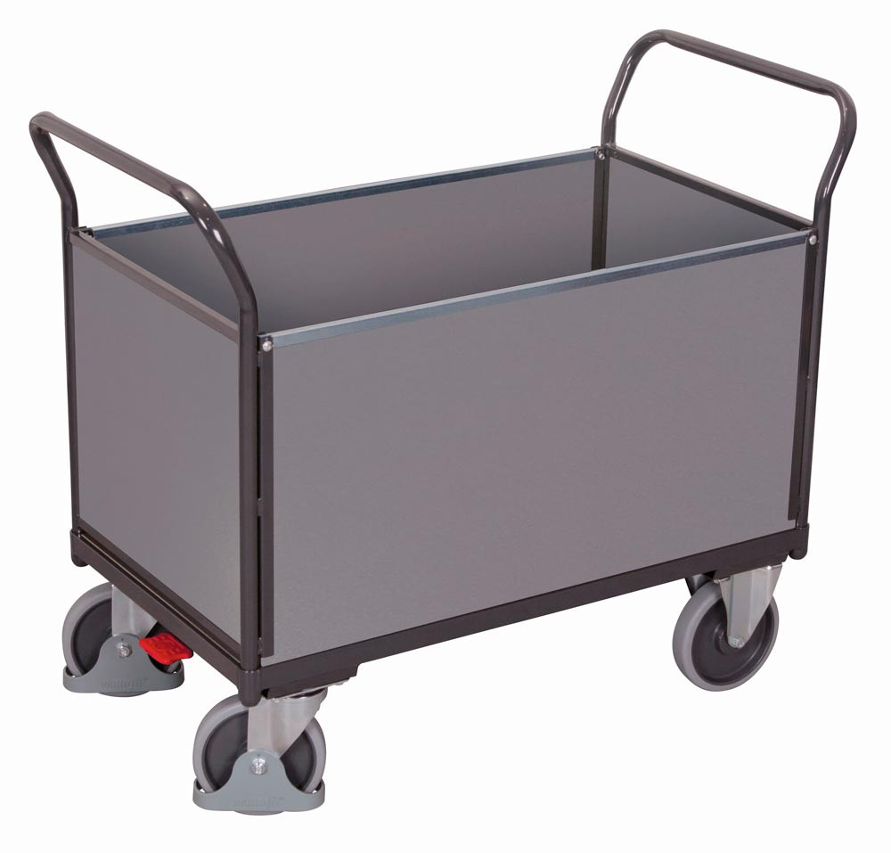 Vierwandwagen mit Holzwänden, Ladefläche LxB 850x450 mm, Außenmaße LxBxH 1040x500x975 mm, Traglast 400 kg, RAL 7016 anthrazitgrau