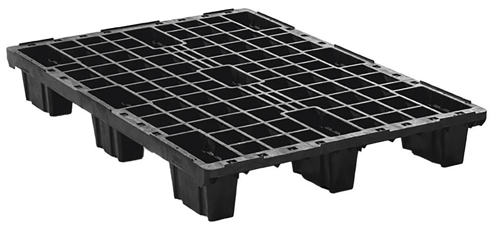 Vierwege-Palette, Recyclingmaterial, BxTxH 800x1200x155 mm, 9 Füße, Traglast statisch 2500 kg, Traglast dynamisch 1000 kg, ohne Rand, schwarz E6471746