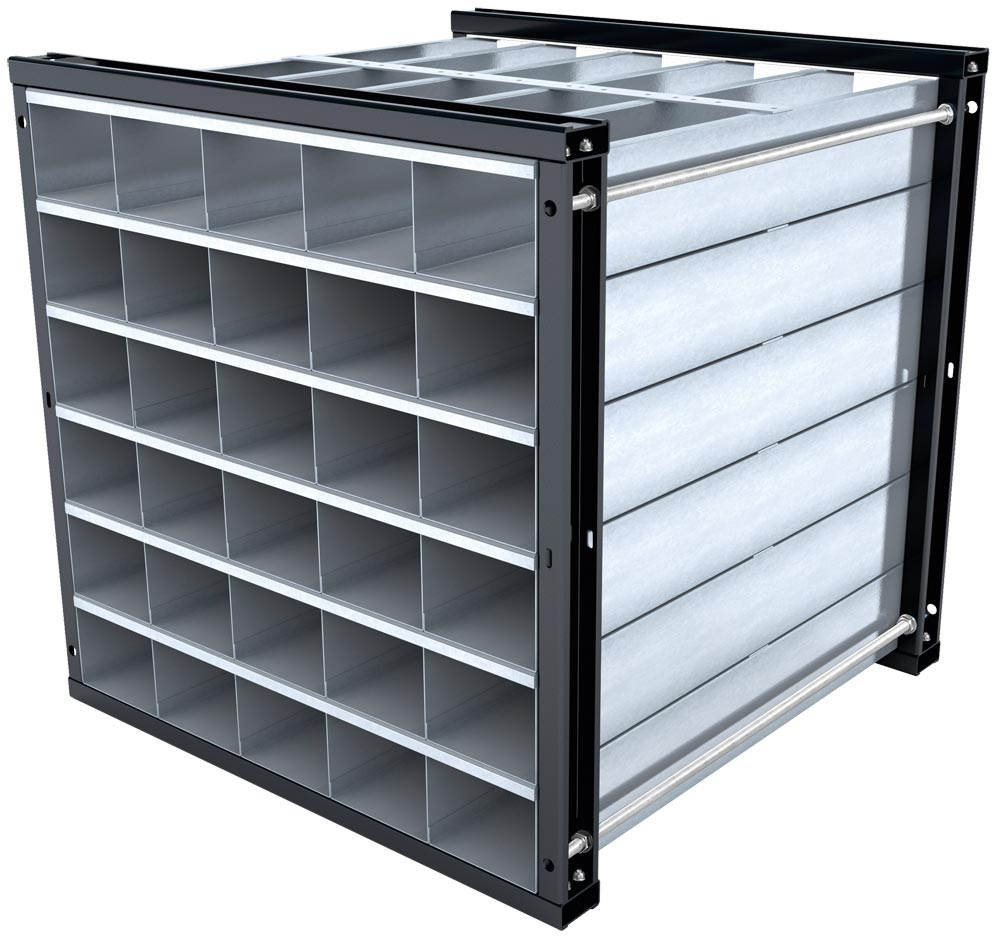 Wabenregal, BxTxH 1000x1000x1000 mm, inkl. 30 Wannen, 5x6 Fächer, Waben BxH 180x130 mm, Wannen verzinkt, Rahmen RAL 7016 anthrazitgrau