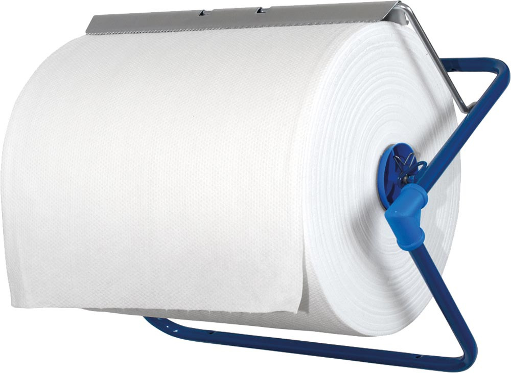 Wandhalter für Putztuchrollen bis 400 mm breite, Metall blau, BxTxH 500x230x312 mm