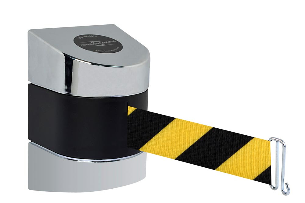 ∙ Nur für den Innenbereich geeignet ∙ Zum permanenten Einsatz in Treppenhäusern, Durchgängen oder in Maschinenhallen ∙ Wandfixierung und Wandhalterung im Lieferumfang enthalten ∙ Gehäuse aus schwarzem Kunststoff mit farbigen Kappen ∙ Gurtlänge 4600 mm