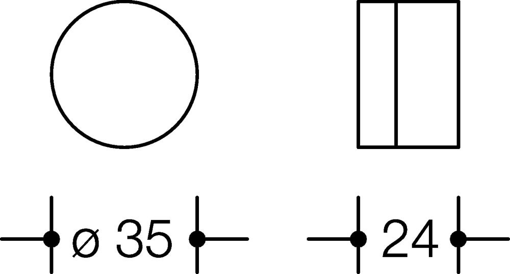 aus Polyamid · Durchmesser 35 mm · 24 mm lang · mit schwarzem elastischen Puffer · Diebstahlgeschützt durch verdeckte Verschraubung · Edition matt