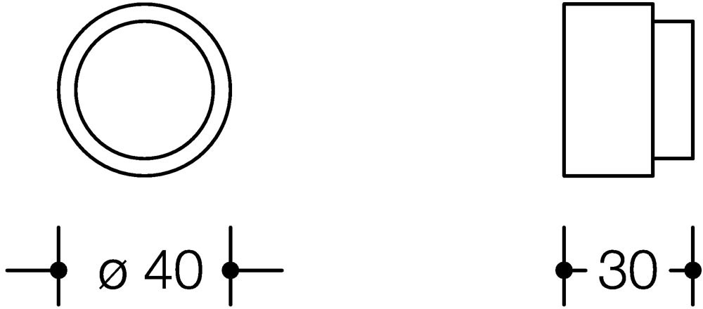 aus Polyamid · Durchmesser 40 mm · 30 mm lang · mit gefedertem schwarzem elastischen Puffer · diebstahlgeschützt durch verdeckte Verschraubung