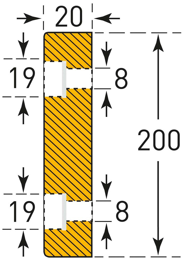 Warn- und Schutzprofil, Flächenschutz, Rechteck, 200x20 mm, gelb/schwarz, 4 Bohrungen, Länge 500 mm