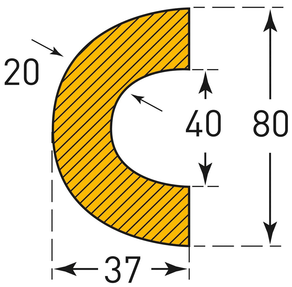 Warn- und Schutzprofil, Rohrschutz, Bogen, 40/75x37 mm, gelb/schwarz, selbstklebend, Länge 1000 mm E827670
