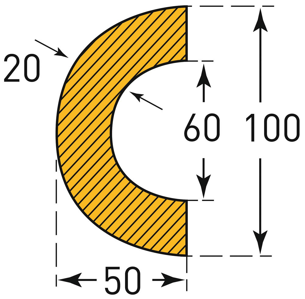 Warn- und Schutzprofil, Rohrschutz, Bogen, 60/100x50 mm, gelb/schwarz, selbstklebend, Länge 1000 mm E822022