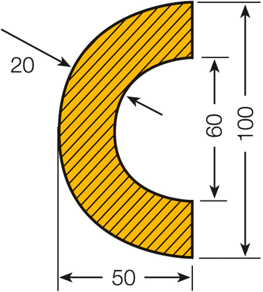 Warn- und Schutzprofil, Rohrschutz, Bogen, 60/100x50 mm, gelb/schwarz, magnetisch, Länge 1000 mm E6408727