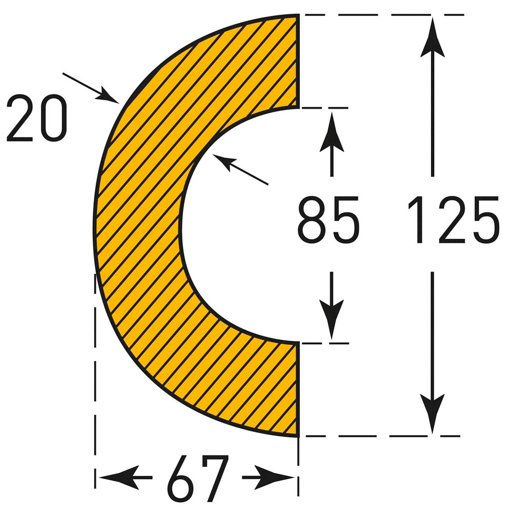 Warn- und Schutzprofil, Rohrschutz, Bogen, 85/135x67 mm, gelb/schwarz, selbstklebend, Länge 1000 mm E827671