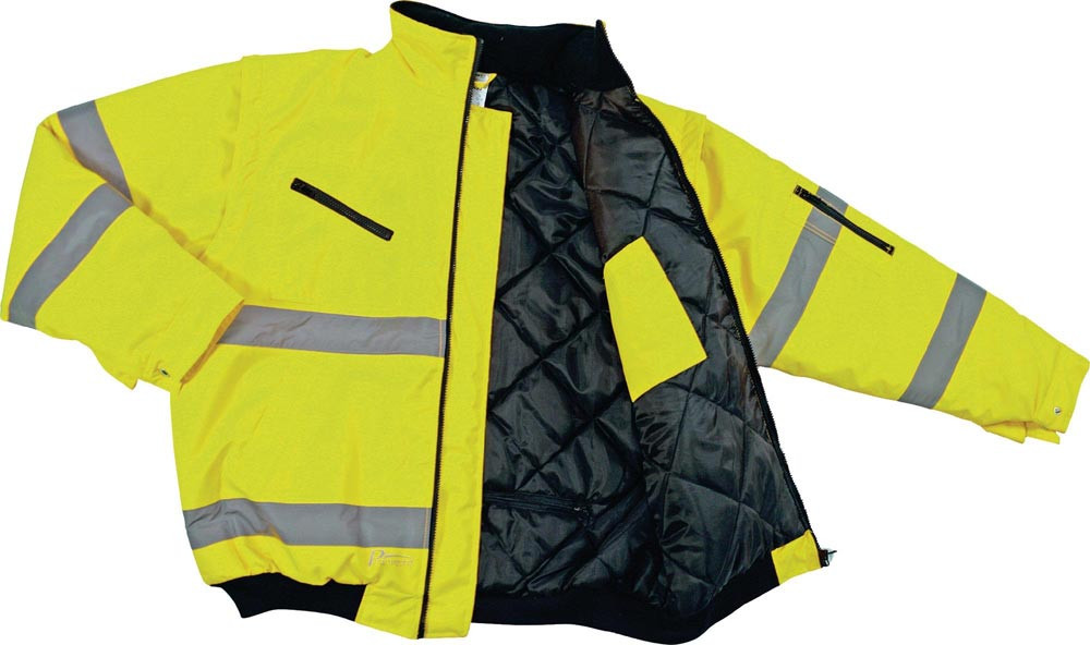 EN 20471 Kl. 2 · EN 343 Kl. 3/1 · 100% Polyester · 2 Brust- und Seitentaschen · 1 Ärmeltasche · 1 Innentasche · Kapuze im Kragen · Steppfutter · abtrennbare Ärmel · Fleecekragen · Kapuze im Kragen · verstellbare Druckknöpfe im Ärmelabschluss