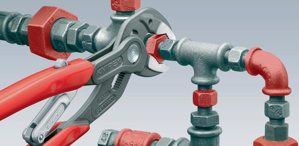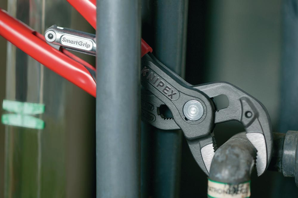 automatische Einstellung am Werkstück · selbstklemmend an Rohren und Muttern · für Rohre 13 mm (1/8) bis 32 mm (1 1/4) · für Muttern bis SW 10 - 36 mm · Greifflächen mit spezialgehärteten Zähnen 61 HRC · Klemmschutz · Chrom-Vanadin-Elektrostahl, geschmiedet, mehrstufig ölgehärtet