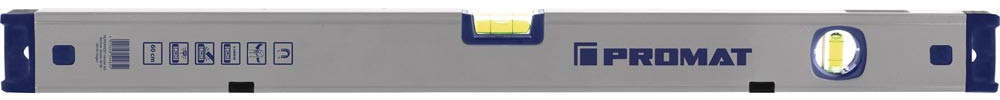 aus Aluminium · mit starken Haftmagneten · Oberfläche silberfarbig pulverbeschichtet · vergrößerte horizontale Libelle für schnellere Erkennbarkeit des Messergebnis · gefräste Messfläche · patentierte Spiegellibelle - Draufsicht auf die vertikale Libelle · Messgenauigkeit in Normalposition ± 0,5 mm/m, in Umschlagposition ± 0,75 mm/m