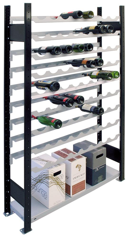 Weinflaschen-Steckregal, Grundfeld, BxTxH 1000x250x1800 mm, Kapazität 72 Flaschen, 9 Lagerebenen E817553