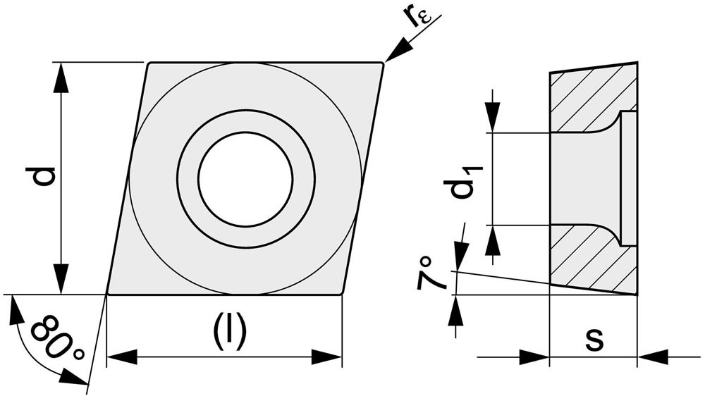 · Vc max.: - m/min in Stahl / - m/min in Rostfrei / 200 m/min in Guss / - m/min in NE-Metalle / - m/min in Superlegierungen / 40 m/min in gehärtete Stähle