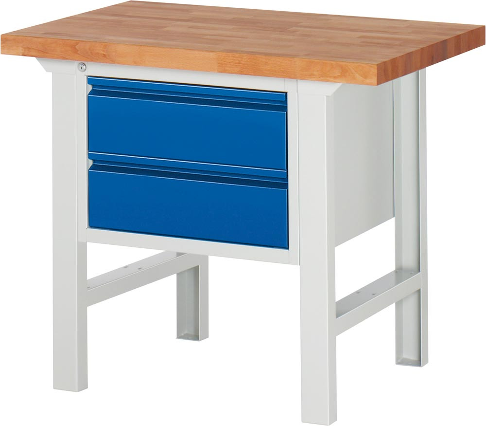 Werkbank, BxTxH 1000x700x840 mm, Platte Buche 40 mm, 2 Schubladen 180 mm, RAL 7035/5010 E1978807