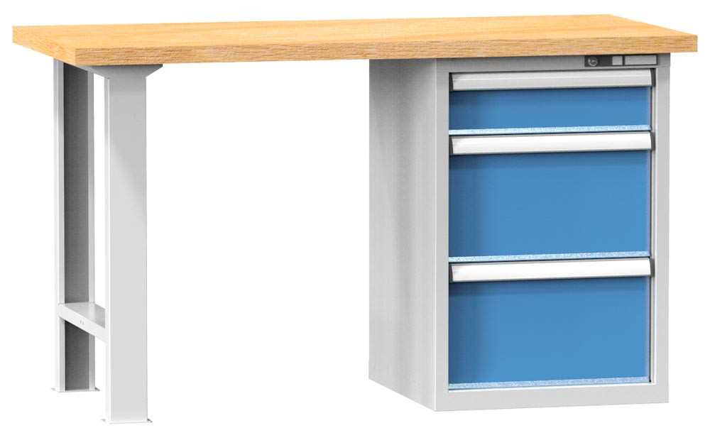 Werkbank, BxTxH 1500x800x880mm, 1 Fuß, 1 Schubladenblock, 3 Schubladen 1x150, 2x300 mm, Traglast 1100 kg, RAL 7035/5012 E6423890
