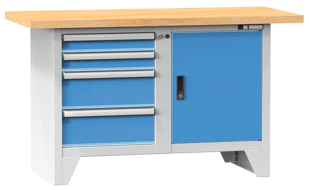 Werkbank, BxTxH 1500x700x880mm, 2 Module, 4 Schubladen 2x100, 2x200 mm, 1 Tür, 1 Boden, Traglast 800 kg, RAL 7035/5012 E6423909