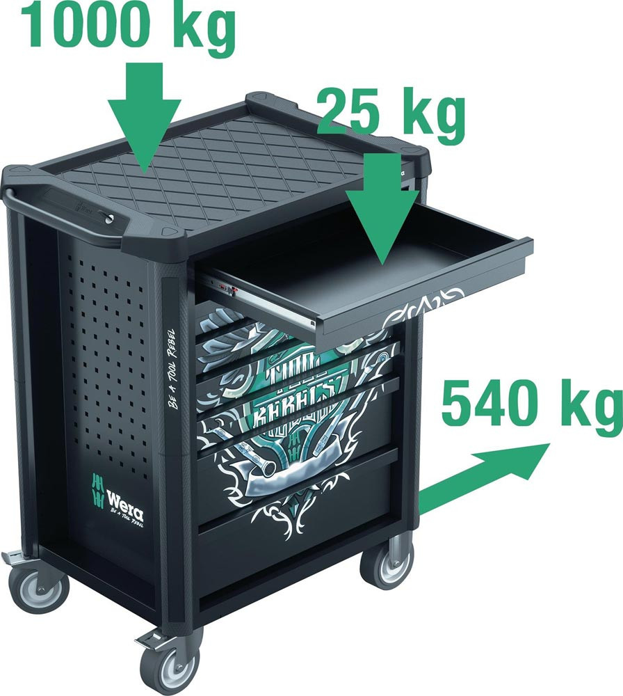 Tragkraft pro Schublade 25 kg / statische Gesamtbelastbarkeit 1000 kg