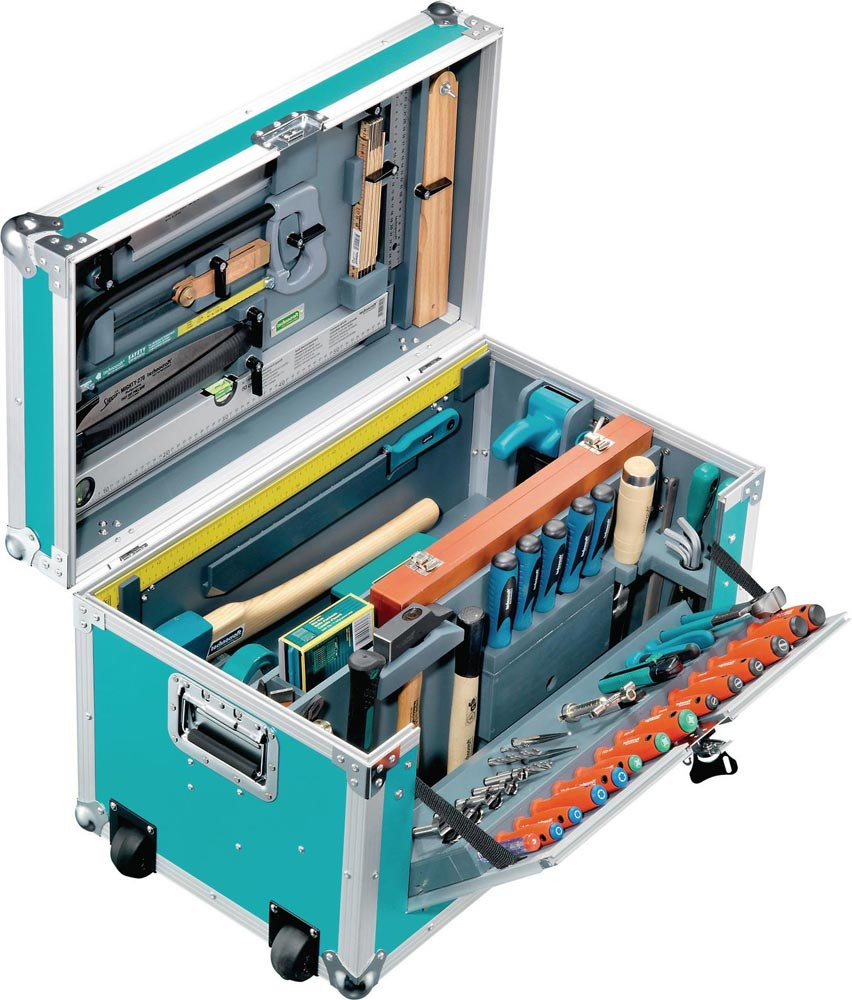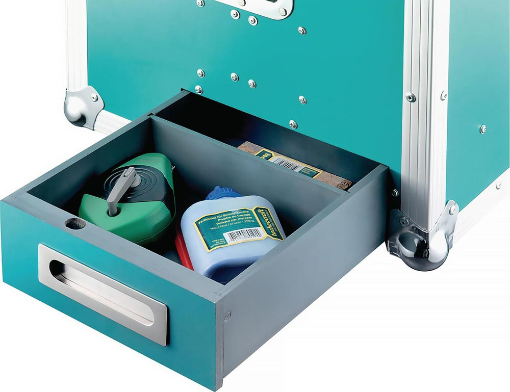 für die Holzbearbeitung / Zimmerei · abschliessbar · mit integrierten Rollen und Schublade für Kleinteile