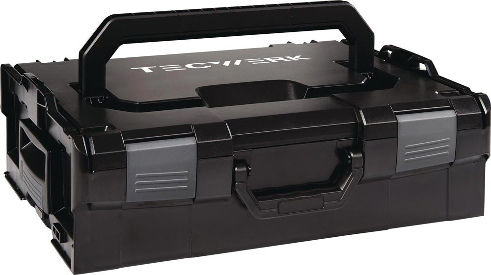aus schlagfestem ABS · schwarz · mit Bedienteilen grau · Frontgriff · Tragegriff in schwarz · verklick- und stapelbar · Transport und Aufbewahrungslösung für Werkzeuge, Zubehör und Verbrauchsmaterialien in einer BOXX®