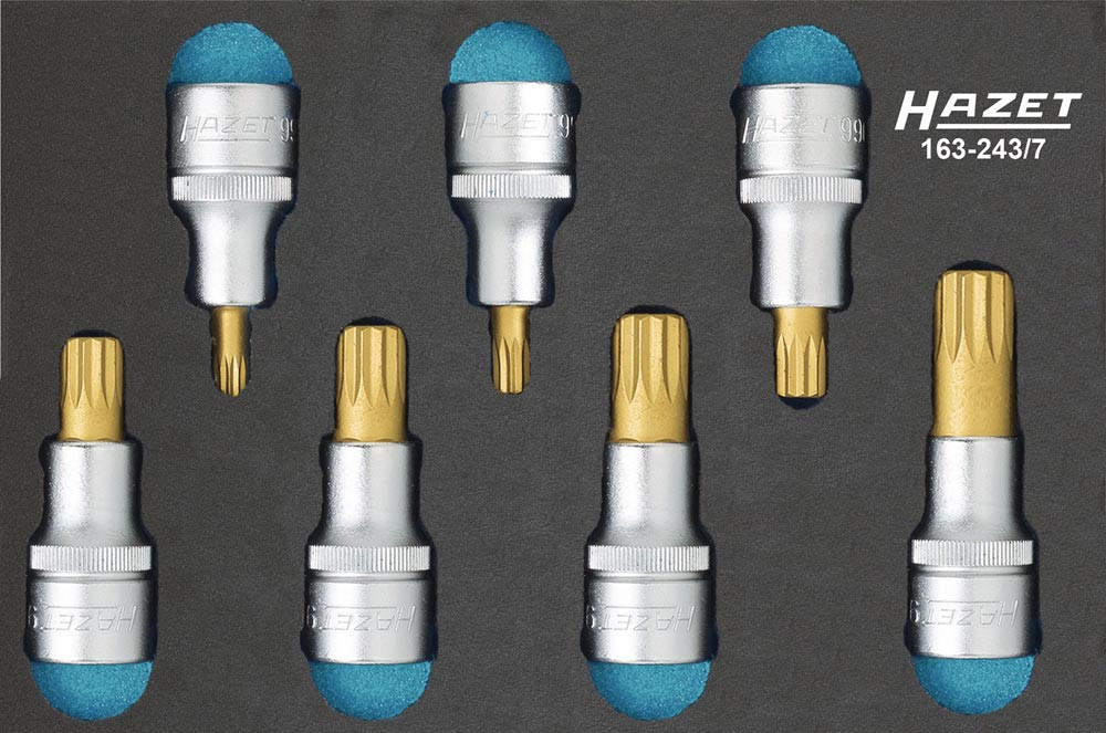 (1/9 Modul) Schraubendreher-Steckschlüsseleinsatz-Satz · je 1 Schraubendreher-Steckschlüsseleinsatz 12,5 mm (1/2″) für Innen-Vielzahn-Schrauben (XZN) M 6 / 8 / 10 / 12 / 14 / 16 / 18