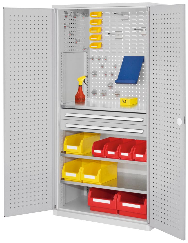 Werkzeugschrank, Türen mit Lochplatten, 2 Schubl.+ 3 Fachb., BxTxH 1000x600x1950 mm, RAL 7035 E863605