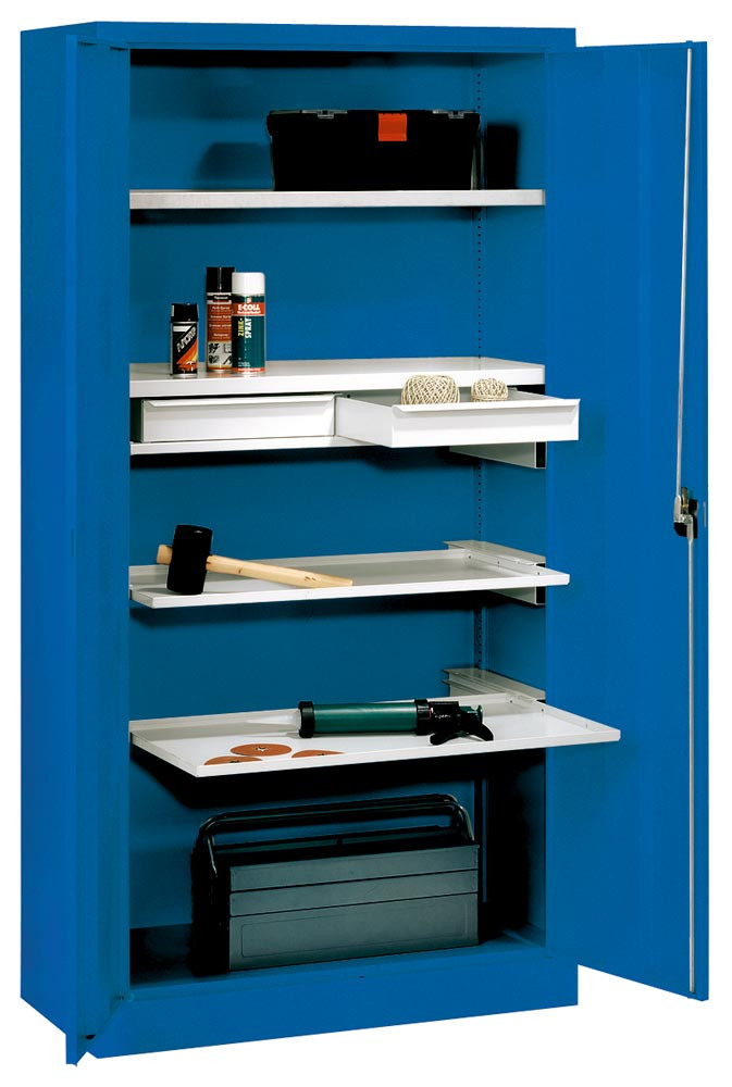 Werkzeugschrank, Vollblechtüren, 4 beschichtete Böden, BxTxH 1000x500x1950 mm, RAL 5010 E873609