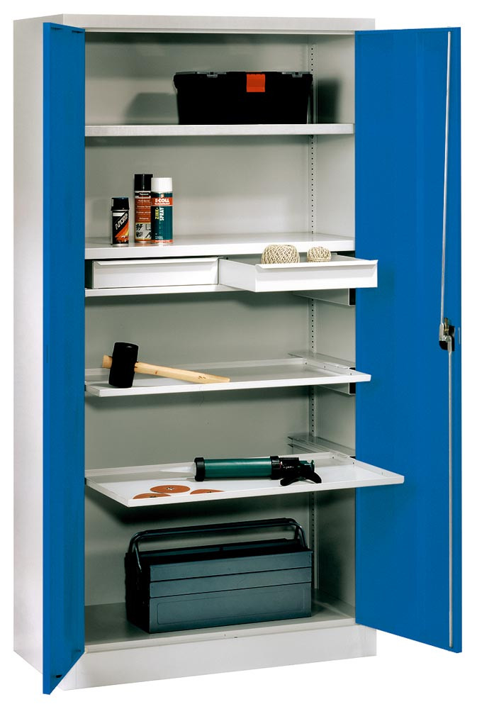 Werkzeugschrank, Vollblechtüren, 4 beschichtete Böden, BxTxH 1000x500x1950 mm, RAL 5010 E873609