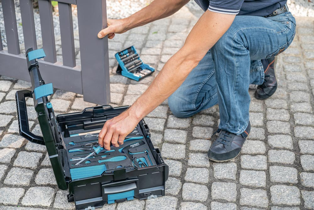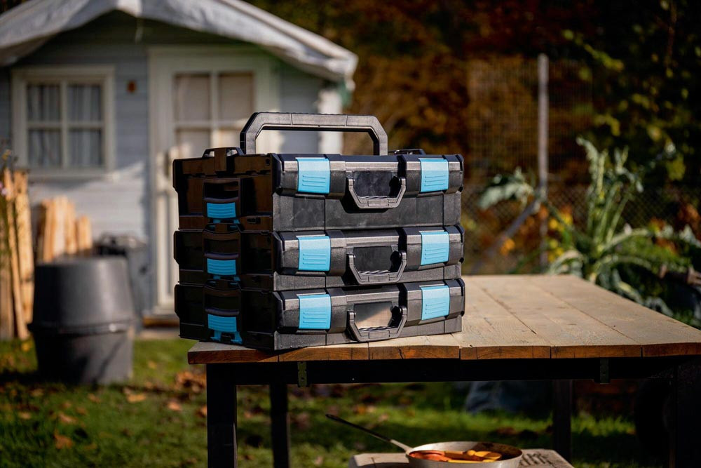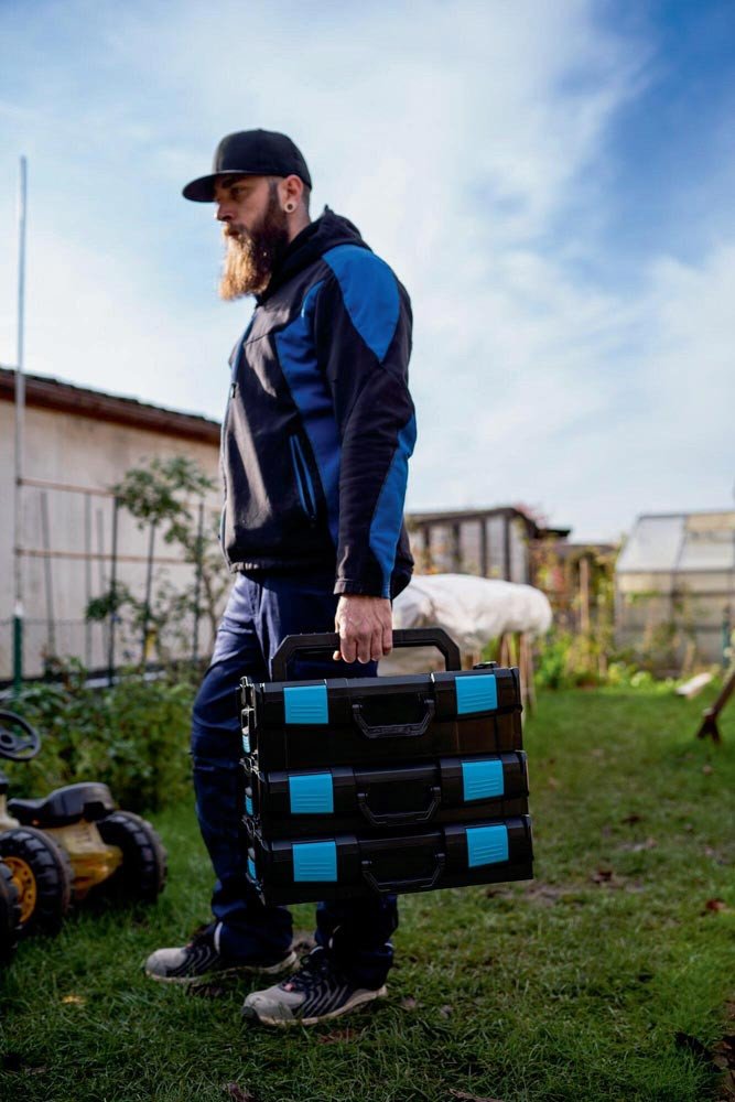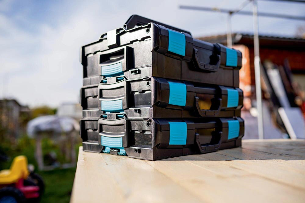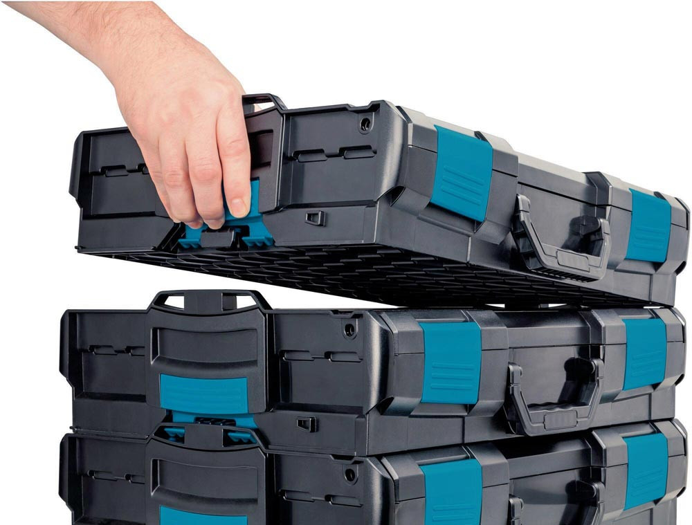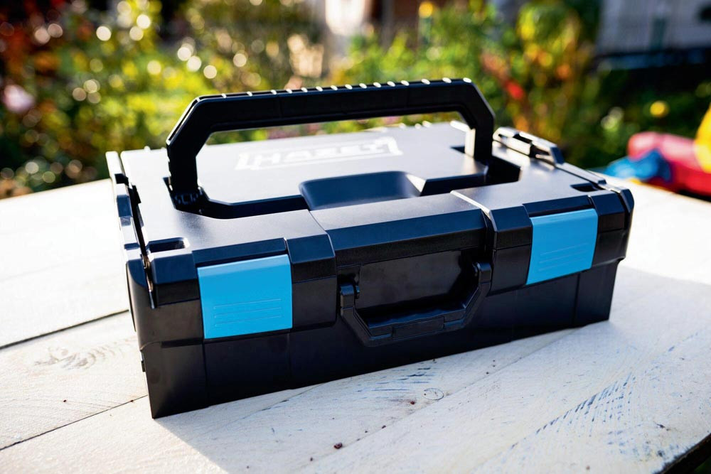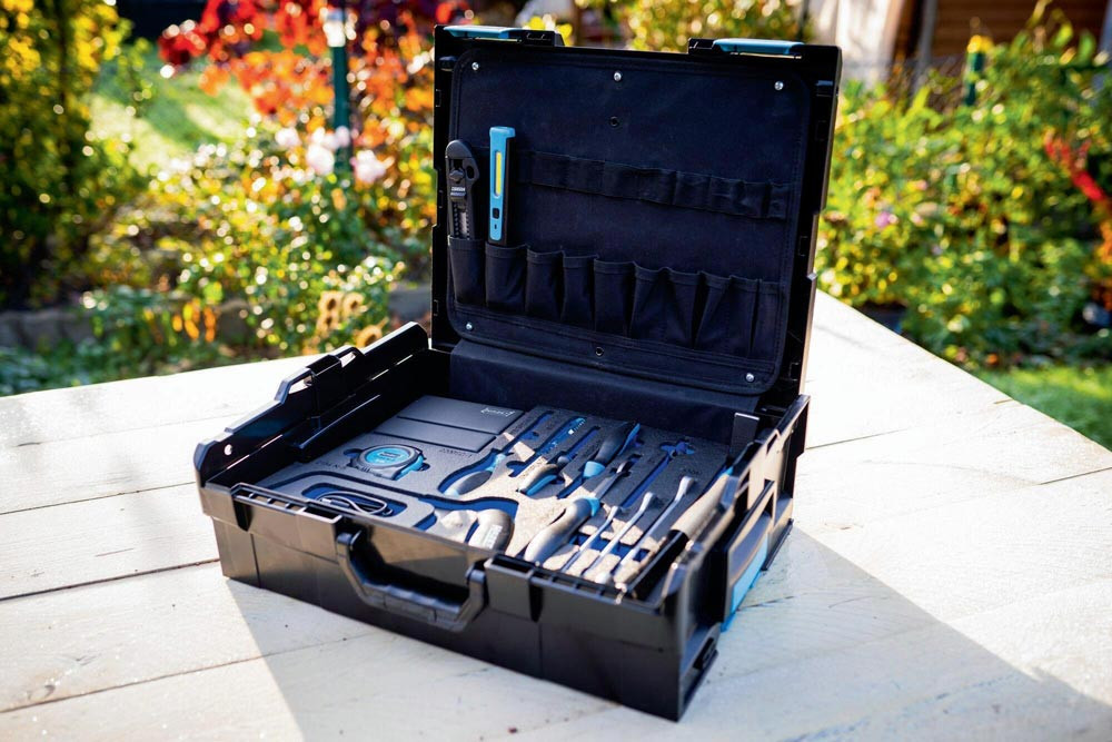 Anwendung: Aufbewahrung und Transport von hochwertigem Werkzeug Durch patentiertes Klicksystem wird die L-Boxx mit weiteren L-Boxxen einfach und zuverlässig verbunden Innenmaße (L x B x H): 378 x 310 x 101 mm Volumen: 13,3 l Extrem robust durch schlag- und stoßfesten ABS-Kunststoff Deckelbelastbarkeit: bis 100 kg Belastbarkeit der Tragegriffe (Beladung Inhalt): 25 Kg Ergonomische Transportgriffe auf Kopf- und Seitenteilen Mit Beschriftungsfeldern Schmutzabweisend und leicht zu reinigen Abmessungen / Länge: 445 mm x 358 mm x 152 mm Anzahl Werkzeuge: 83