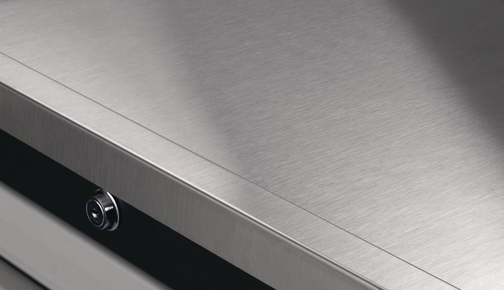 mit 7 Schubladen · Handgriff · kugelgelagerte, mit Teleskopschienen herausziehbare Schubladen mit 100 % Auszug mit jeweils einer Antirutschmatte · automatischer Schubladeneinzug · Schubladen mit "Lift to open" Funktion, verhindert selbstständiges Öffnen der Schubladen · mit Zentralverriegelung (nur eine Schublade kann gleichzeitig geöffnet werden) · Einteilerset für 4 Schubladen im Lieferumfang enthalten · abschließbar mittels eingebauten Zylinderschloss mit 4 Schlüsseln · beidseitiges Lochwandsystem (9 x 9 mm) für einfache Installation von Zubehörartikel · hochwertige PVC Rollen · 4 lenkbare Rollen · 2 inkl. Bremsfunktion · Edelstahl Ablagefläche · durchgehender seitlicher Kantenschutz