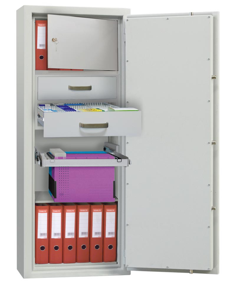 Wertschutzschrank, Sicherheitsstufe Kl. 0/N, BxTxH 530x415x1470 mm, Vol. 182 l, 3 Böden, RAL 7035 lichtgrau E878226