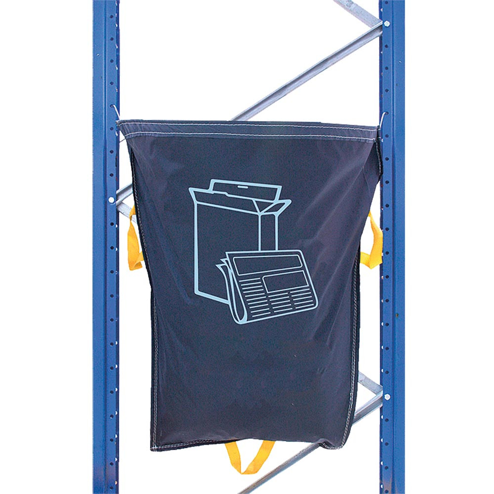 · Reibungslos ablaufende Arbeitsprozesse unter Gewährleistung der Arbeitssicherheit erfordern auch Sauberkeit und Ordnung im Lager und an Arbeitsplätzen – so dürfen unter anderem Wege und Aktionsbereiche nicht mit Abfall zugestellt werden, um Unfallgefahren für Menschen und Maschinen auszuschließen · Dies ist jedoch nicht immer einfach umzusetzen, denn tagtäglich fällt neuer Müll zur Entsorgung an wie auch Verpackungsmaterial in allen Größen, das ordnungsgemäß nach Wertstoffen getrennt dem Recyclingprozess zugeführt werden muß · Entsprechend viele Abfallbehälter werden benötigt, die aber, zumeist auf dem Boden stehend, wertvollen Raum im Versand und Lager für sich beanspruchen · Wertstoffsäcke sind außerordentlich flexibel einsetzbar, da sie an Regalen, Gitterwagen u.ä. aufgehängt werden und somit keinen Bodenplatz benötigen · Die Aufhängung erfolgt in der Regel mit zwei stabilen S-Haken, die jedem Sack beiliegen und einfach in die Lochung der Regalelemente eingeklinkt werden · Die Wertstoffsäcke sind aus einem strapazierfähigen, wasserdichten Polyestergewebe gefertigt, besitzen ein Inhaltsvolumen von 120 Litern und verfügen über drei große Handschlaufen zur schnellen Entleerung · Deutlich sichtbare, langlebige Aufdrucke auf den Frontseiten der Säcke stellen die korrekte Wertstoffzuordnung sicher