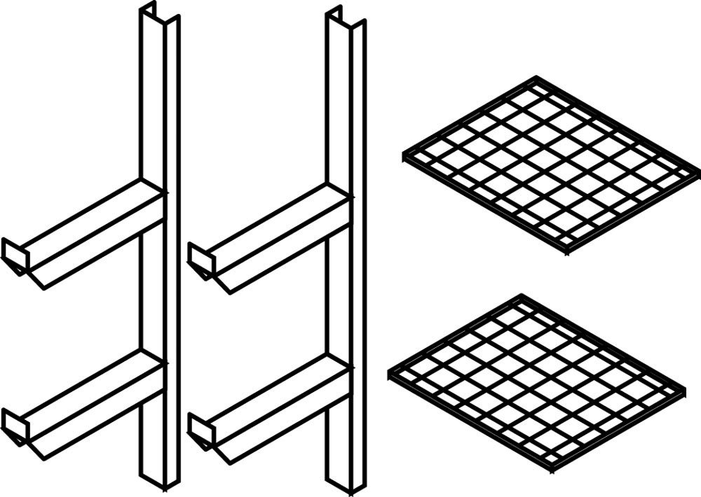 Zubehör zu SafeMaster, Fass-Gitterrostregal komplett, 2 Ebenen mit Gitterrostboden über die halbe Breite, BxT 600x500 mm